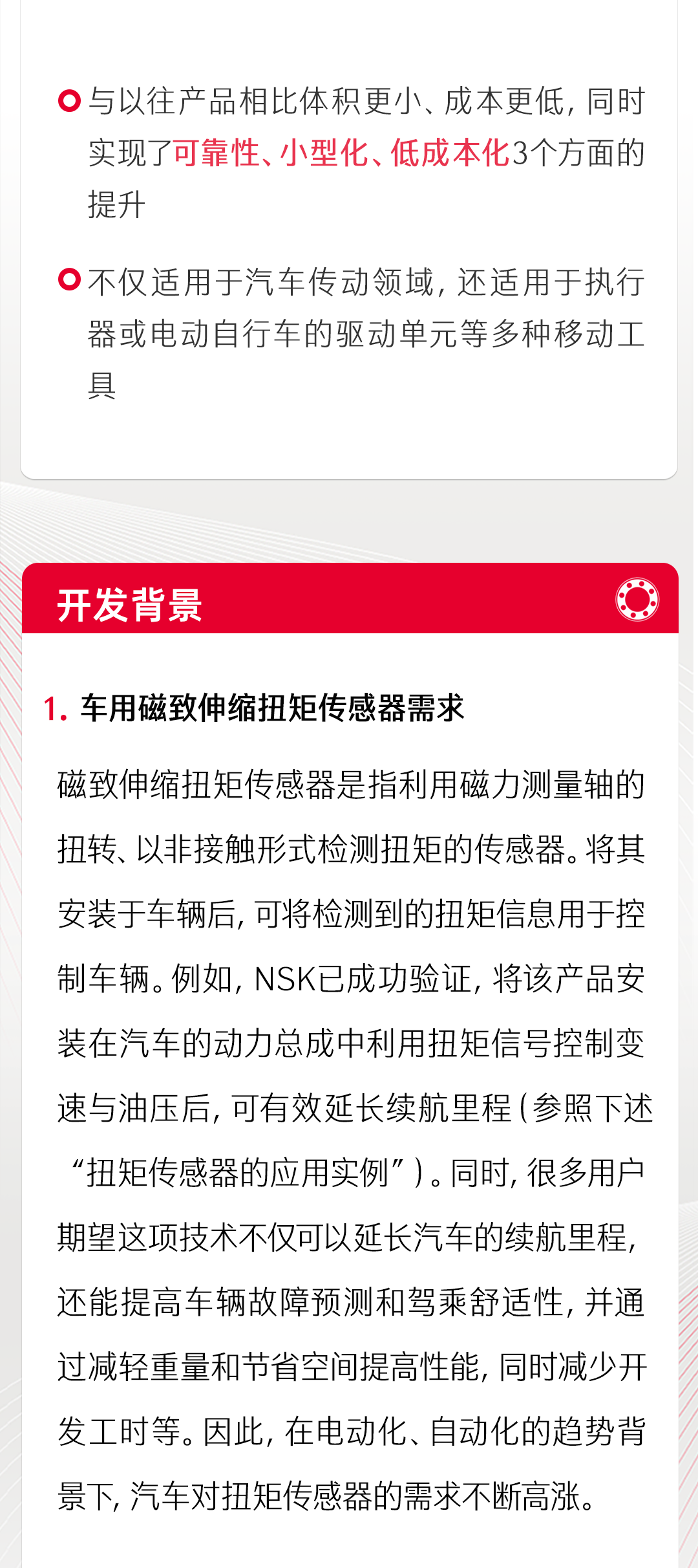 NSK成功開發(fā)車用磁致伸縮扭矩傳感器實用模型
