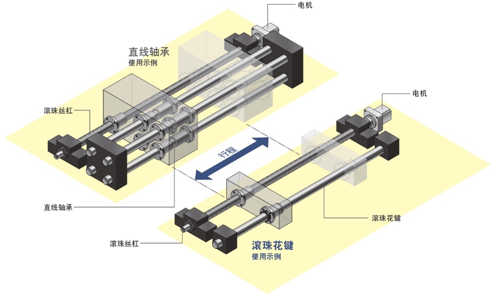 滾珠花鍵通過(guò)單軸傳遞扭矩,因此可實(shí)現(xiàn)直線及旋轉(zhuǎn)的組合運(yùn)動(dòng)。