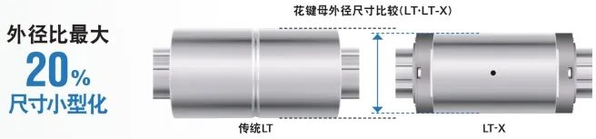 采用新循環(huán)路徑,使花鍵母外徑比傳統(tǒng)型號(hào)LT/LF型更小。