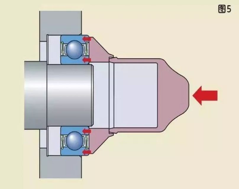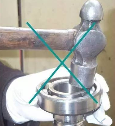 安裝內圈(或外圈)過盈配合的軸承,禁止用鐵錘直接敲擊軸承內圈(或外圈)端面,這樣很容易把擋邊敲壞。應該采用套筒放在內圈(或外圈)端面上,用鐵錘敲擊套筒來安裝。