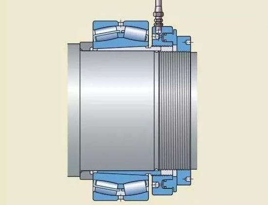 梯形套筒將因油壓而膨脹的套筒插到軸上,施加所需的壓入力(擰緊力)后,除去油壓,在將套筒固定在軸上的同時向軸承施加抒緊力,是一種比較容易的固定方法。