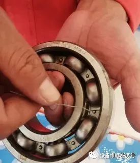 5.轉動內軌或外軌使滾動體從鉛絲絲上滾動壓扁鉛絲